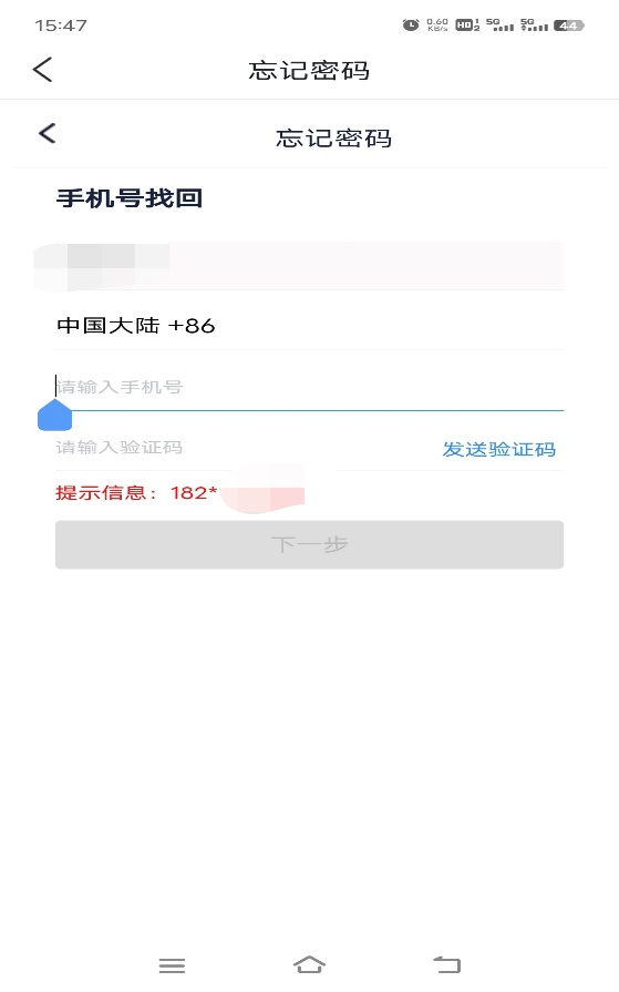 2.学生输入本人学号,教职工输入教职工号。点击下一步选择手机号找回方式